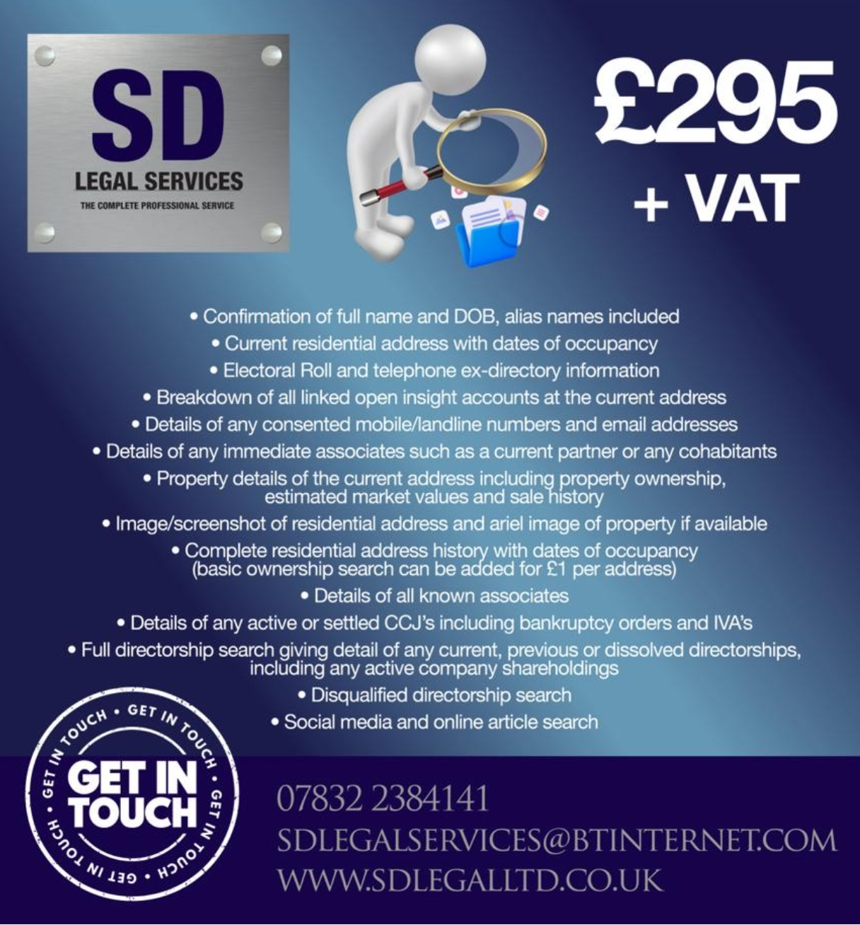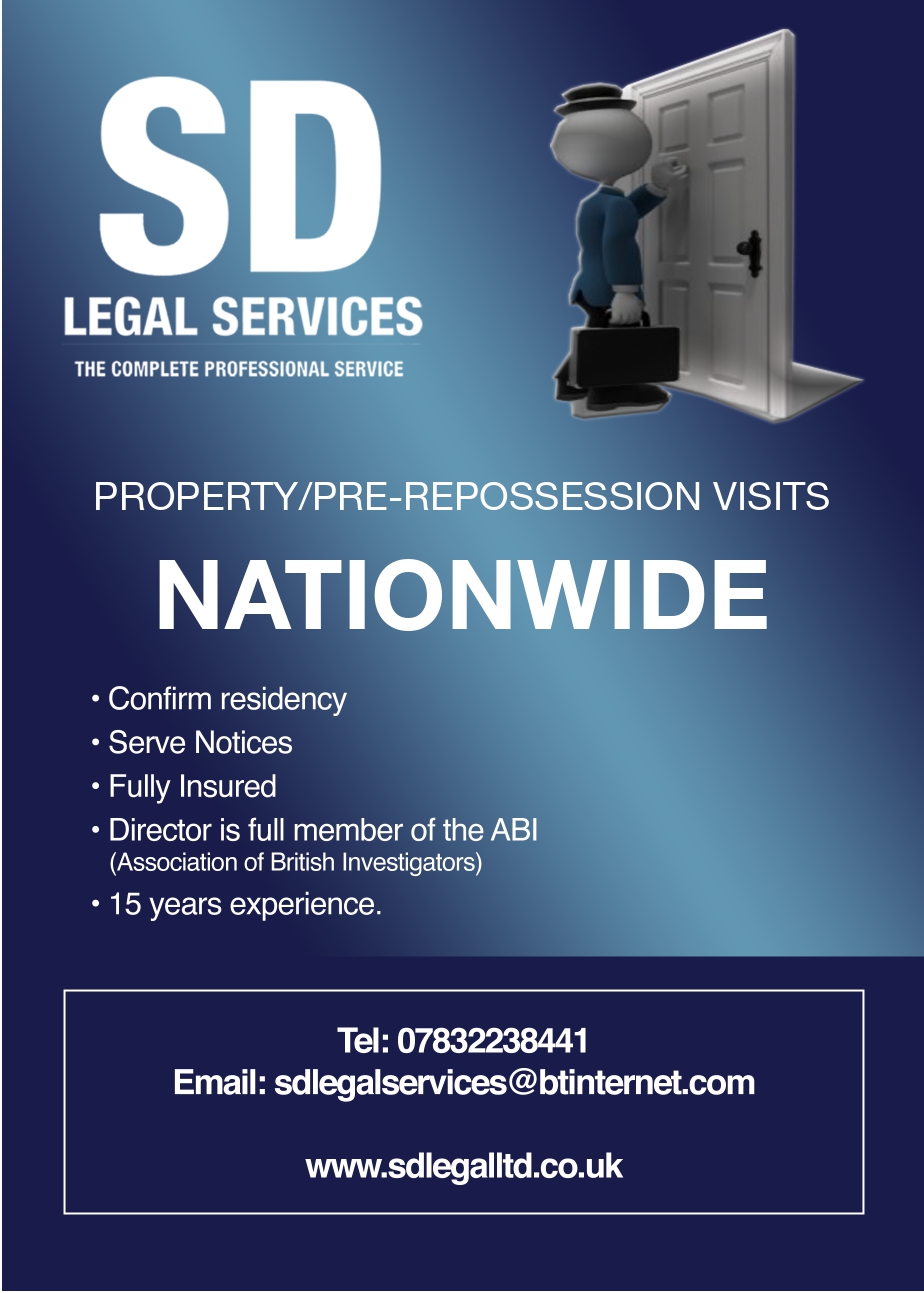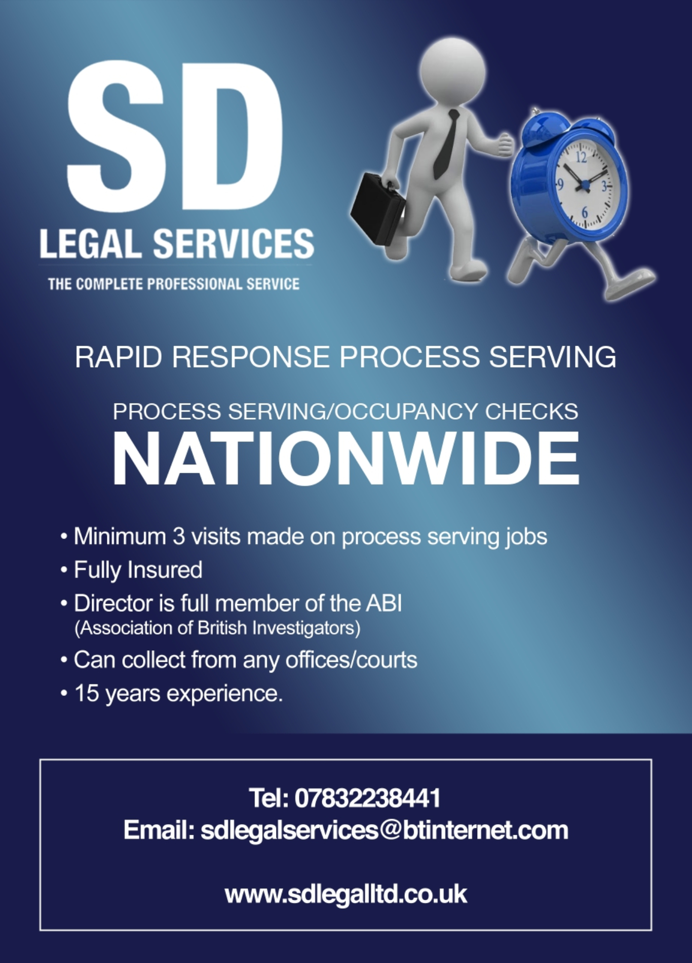 Established in 2007, SD Legal Services provides 'the complete professional service' offering a full range of process serving, investigation and enforcement solutions to the debt, legal, property management and local authority sectors.
